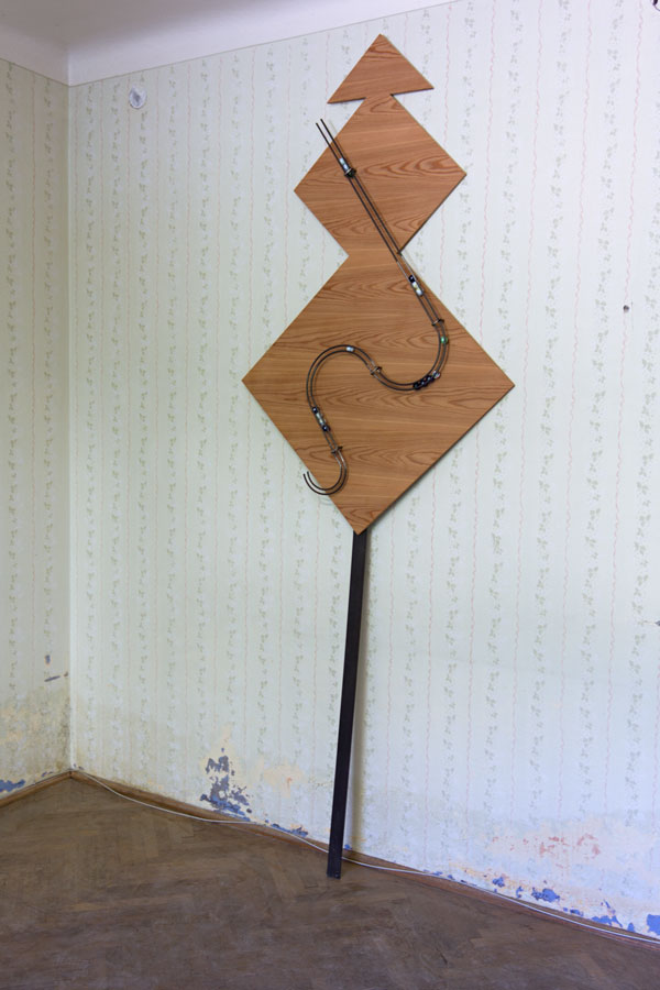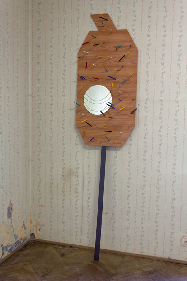Während eines Residenzaufenthalts im alpinen Raum, genauer in Bad Gastein, lernte ich die dort beheimateten, traditionellen Prozessionselemente der Perchtenläufe kennen. Der ungewohnt hohe Kontrast von Mensch und Natur in der Bergwelt und die daraus entstanden Mythen und Wesen zur Verarbeitung, Erklärung und Rechtfertigung der eigenen Existenz, auch als Basis von Gemeinsamkeit im Kontrast zur monumentalen Natur, bilden für mich den Hintergrund zu solchen für mich Fremden wahrgenommenen Exotismen, wie eben den Perchten im Gasteiner Tal. Als Fremder in der Fremde ist man nicht nur mit der Schattenseite seiner Identität konfrontiert, sondern die eigene Fremdheit wird auch durch den persönlichen Fokus auf die Dinge bewußt, die fremde Alltäglichkeit, die einem in besonderem Maße ins Auge sticht. Die skulpturale Übertragung der Perchtenkappen verknüpfte ich mit den unangemessenen Tauschmitteln unterschiedlicher kolonialer Zeitalter: Alkohol, Glasmurmeln, Kugelschreiber.