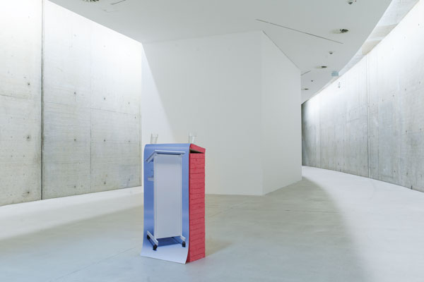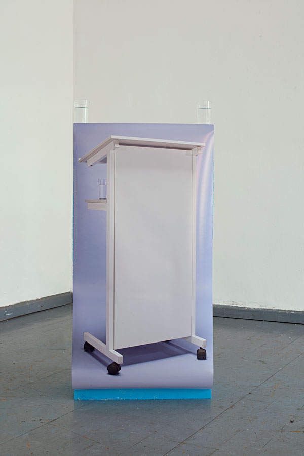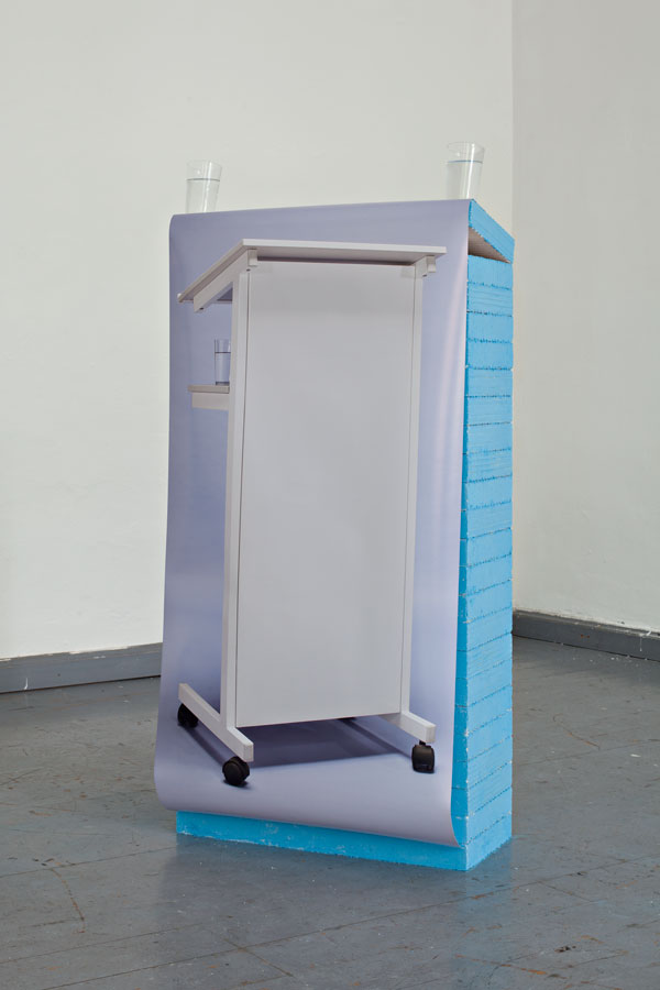 Skulptur, die gleichzeitig als Rednerpult für den Diplom-Vortrag »I Am A Camera« von Daniel Niggemann an der HGB Leipzig funktionieren sollte.