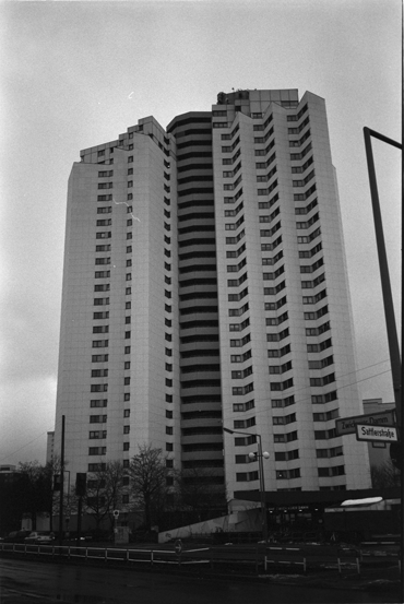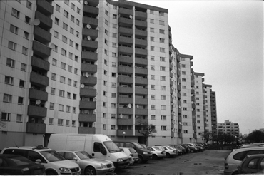 »WALTER UND CHRISTIANE«(2) Gropiusstadt in Berlin, anfänglich von W.Gropius in den 60ern konzipiert, war desolate Heimat von Christiane F., welche die Siedlung in ihren Kindheitsschilderungen immer wieder erwähnt. Kombination aus Textpassagen und Fotografien von Heute.